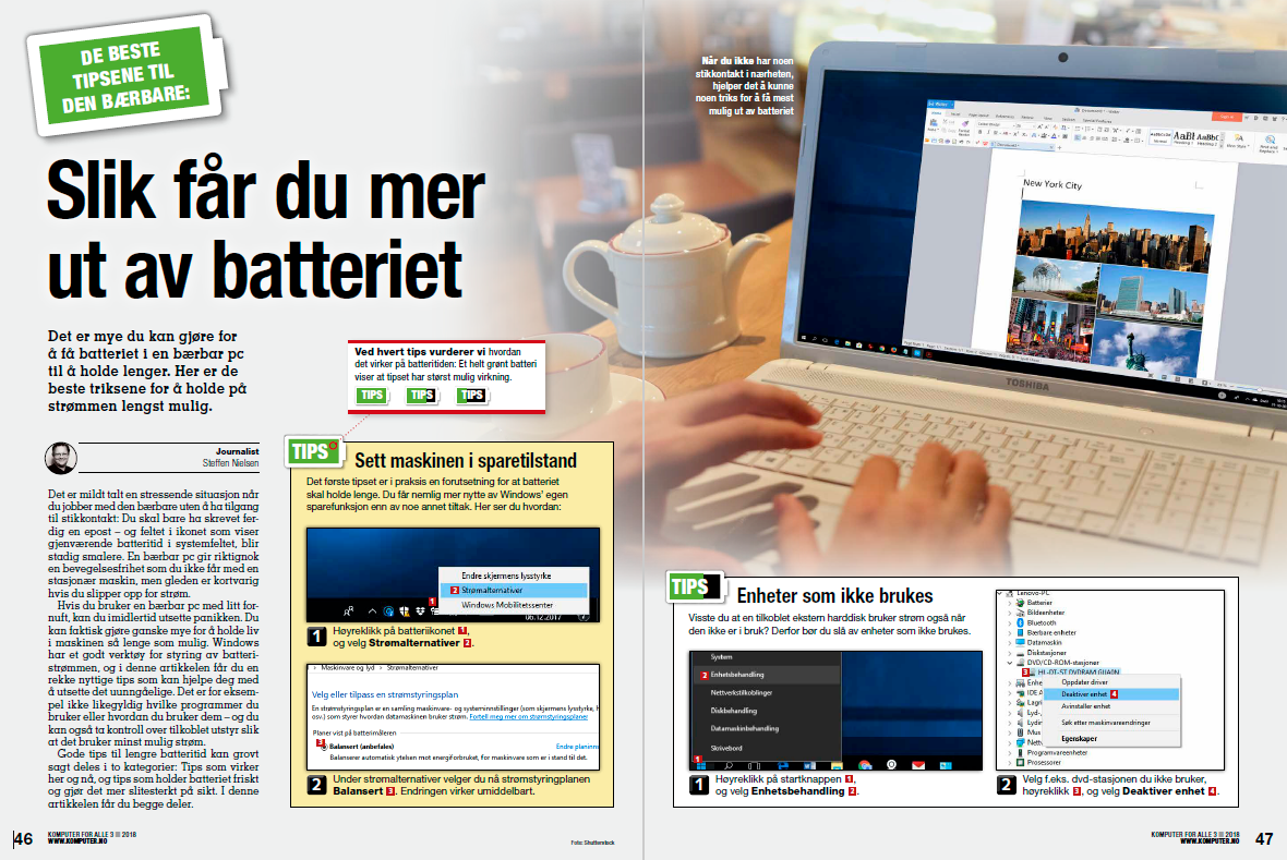Bærbar pc Slik får du mer ut av batteriet Det er mye du kan gjøre for å få batteriet i en bærbar pc til å holde lenger. Her er de beste triksene for å holde på strømmen lengst mulig.