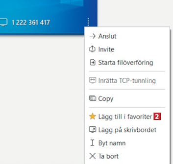 Nå har den tilkoblede maskinen fått et navn, slik at du vet hvilken pc 7 det er snakk om. Neste gang du skal koble deg til, klikker du først på de fire prikkene 8.