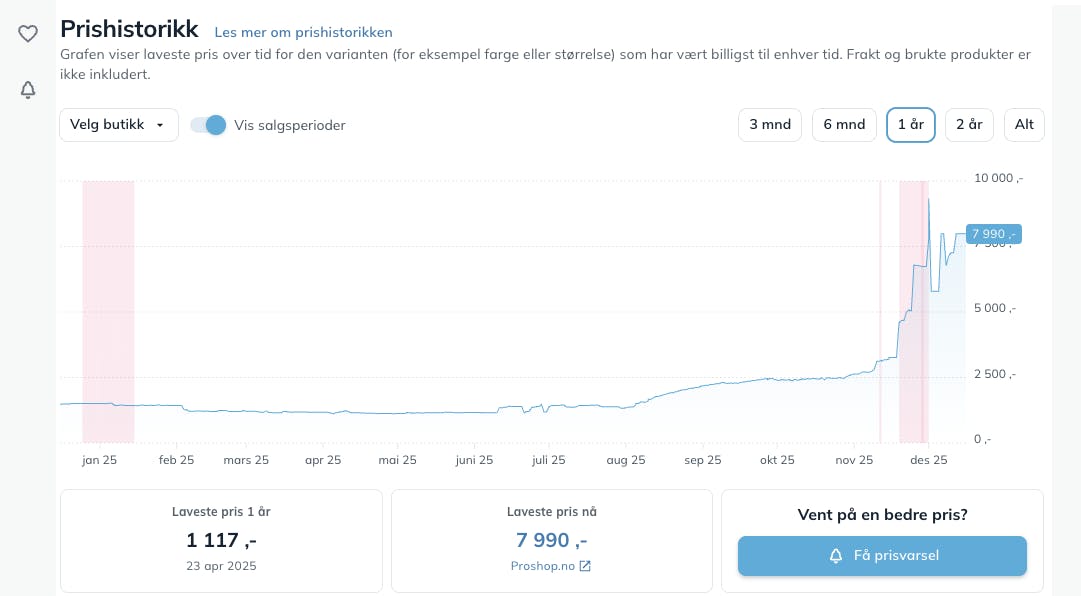 Når du klikker på forskjellige ram-moduler og velger fanen Prishistorikk, kan du ved mange av produktene se at prisen har økt kraftig bare de siste månedene.