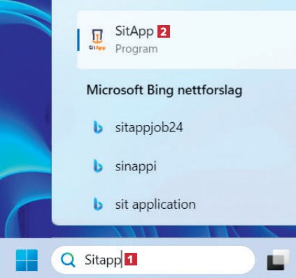 Last ned og installer programmet. Skriv Sitapp 1 i søkefeltet, og klikk på resultatet ved samme navn 2.