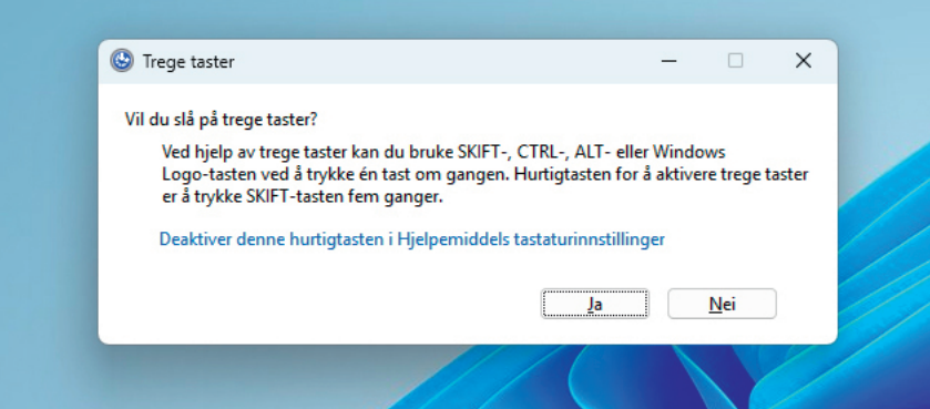 Her er den irriterende meldingen som dukker opp når du har trykket litt for mange ganger på Skift-tasten.