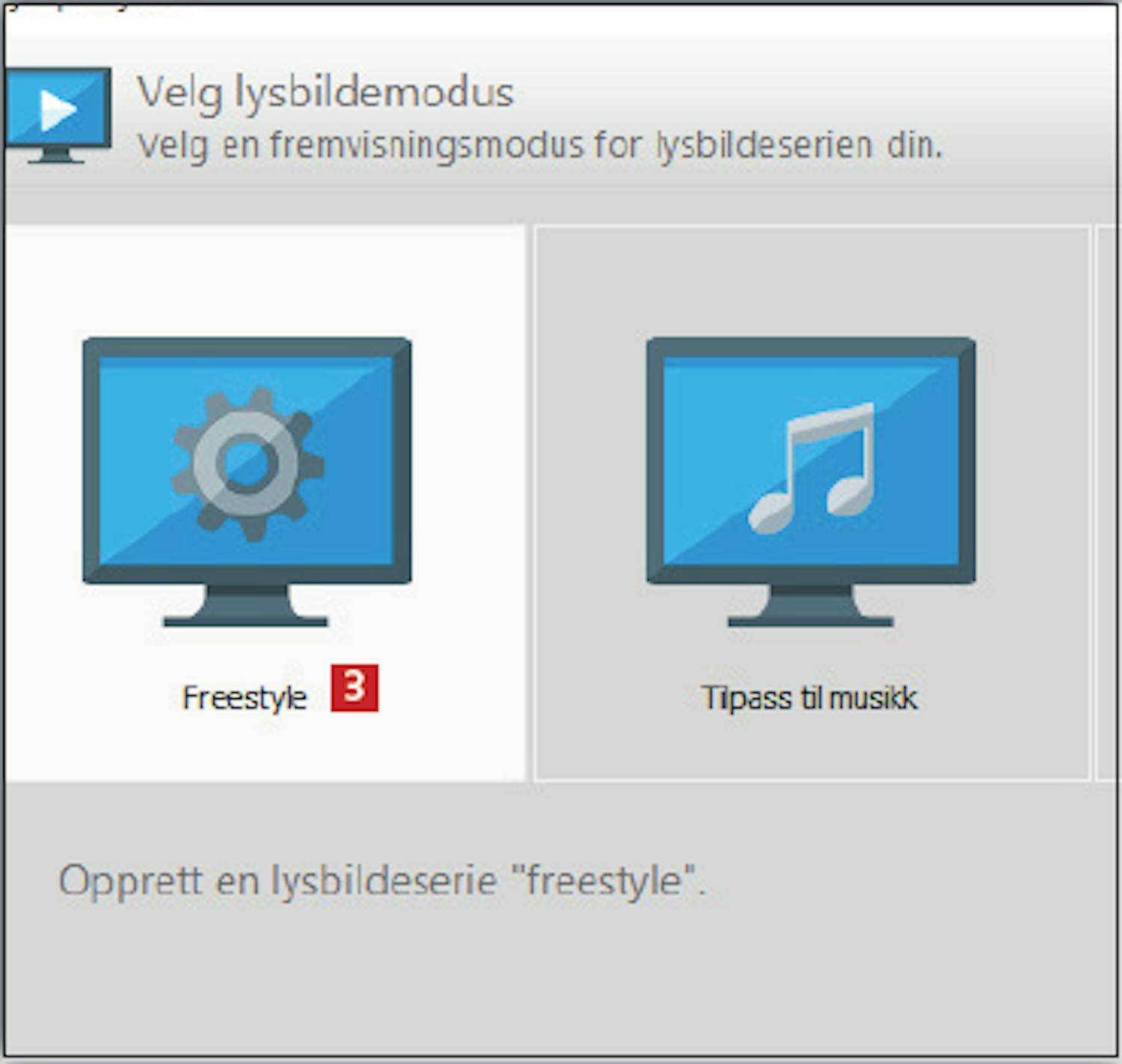 Når du har fullført registreringen, som vist nederst på siden, starter du med lysbildeserien. Først viser vi deg den enkle metoden. Vi kommer tilbake til de mer avanserte mulighetene som programmet også byr på. Vi går ut fra at du allerede har funnet frem noen bilder og litt bakgrunnsmusikk.