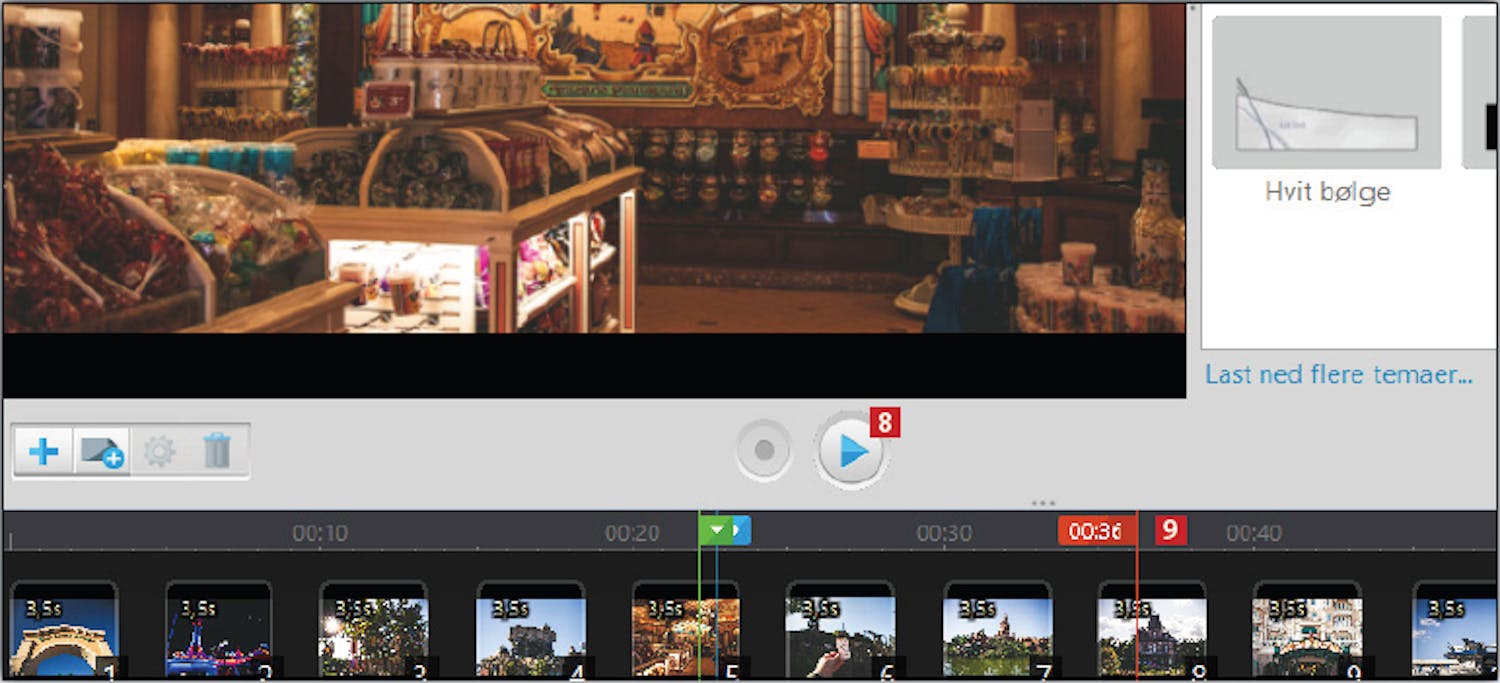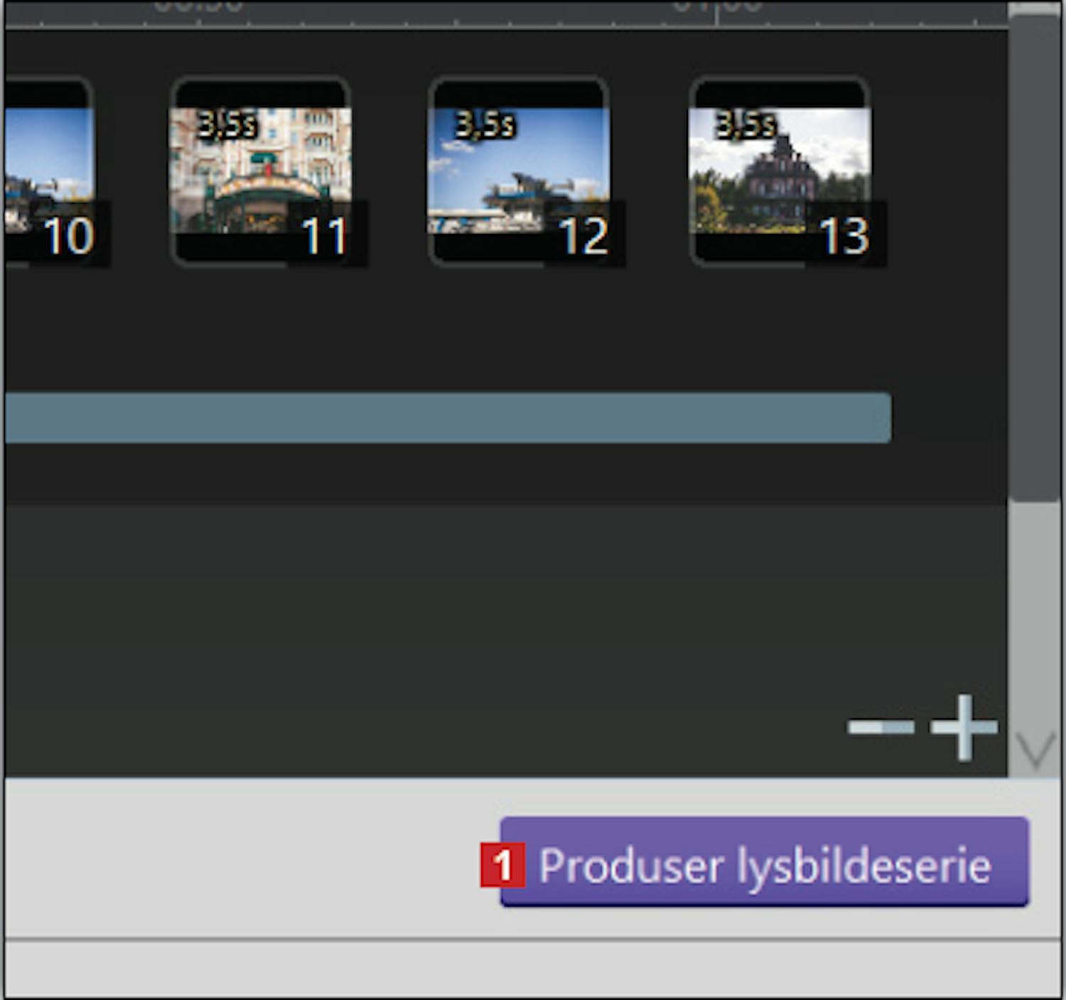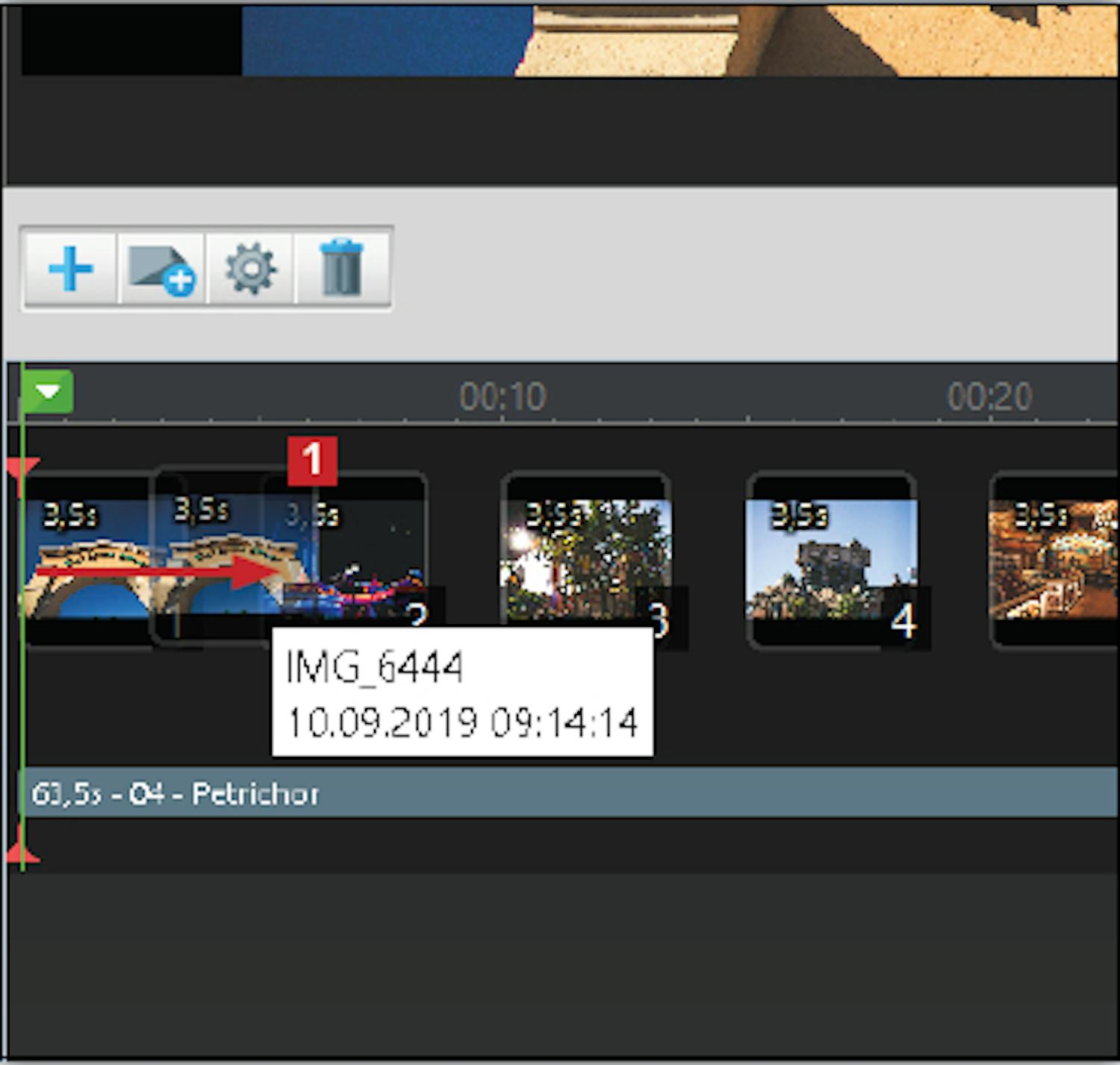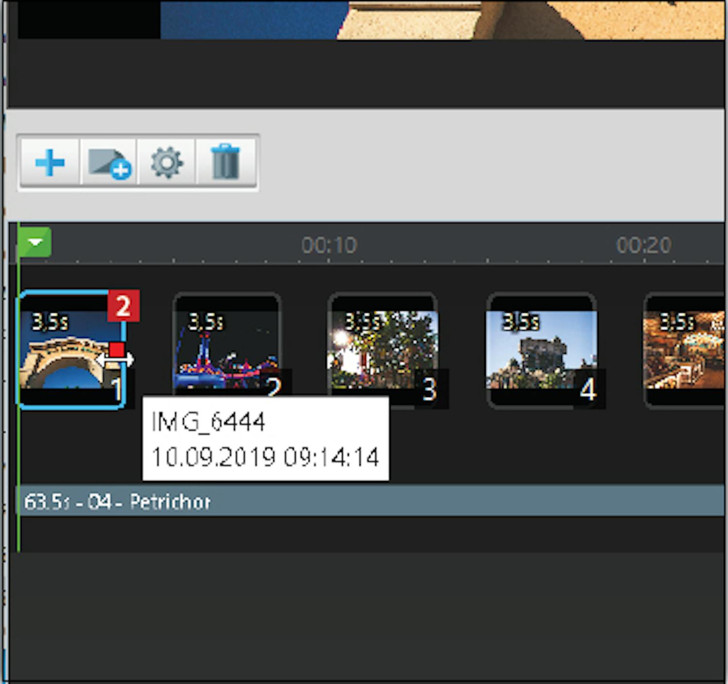 Hvis du vil endre bildenes plassering og varighet, bruker du tidslinjen nederst i hovedvinduet. Vi viser de viktigste detaljene, men vær oppmerksom på at programmet har mange flere funksjoner. Du har nå alle muligheter til å sette sammen den perfekte lysbildeserien.