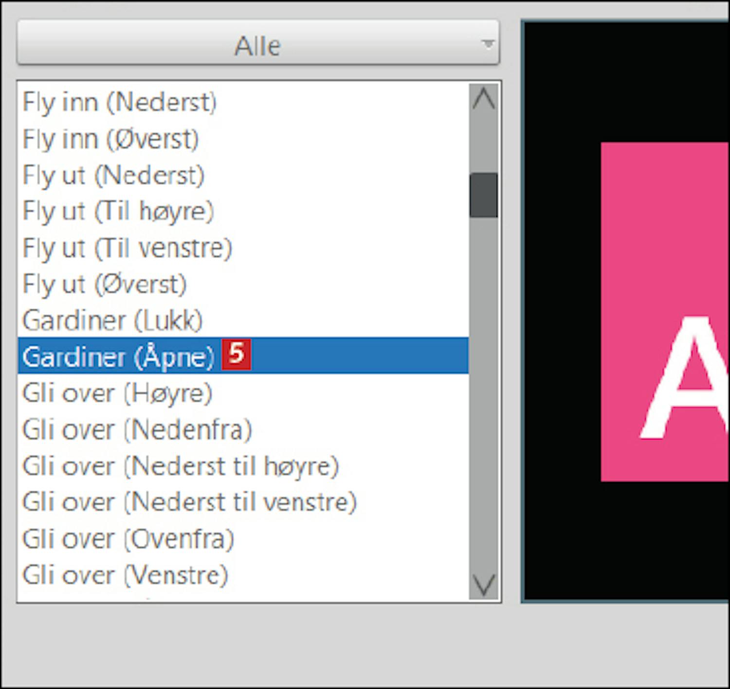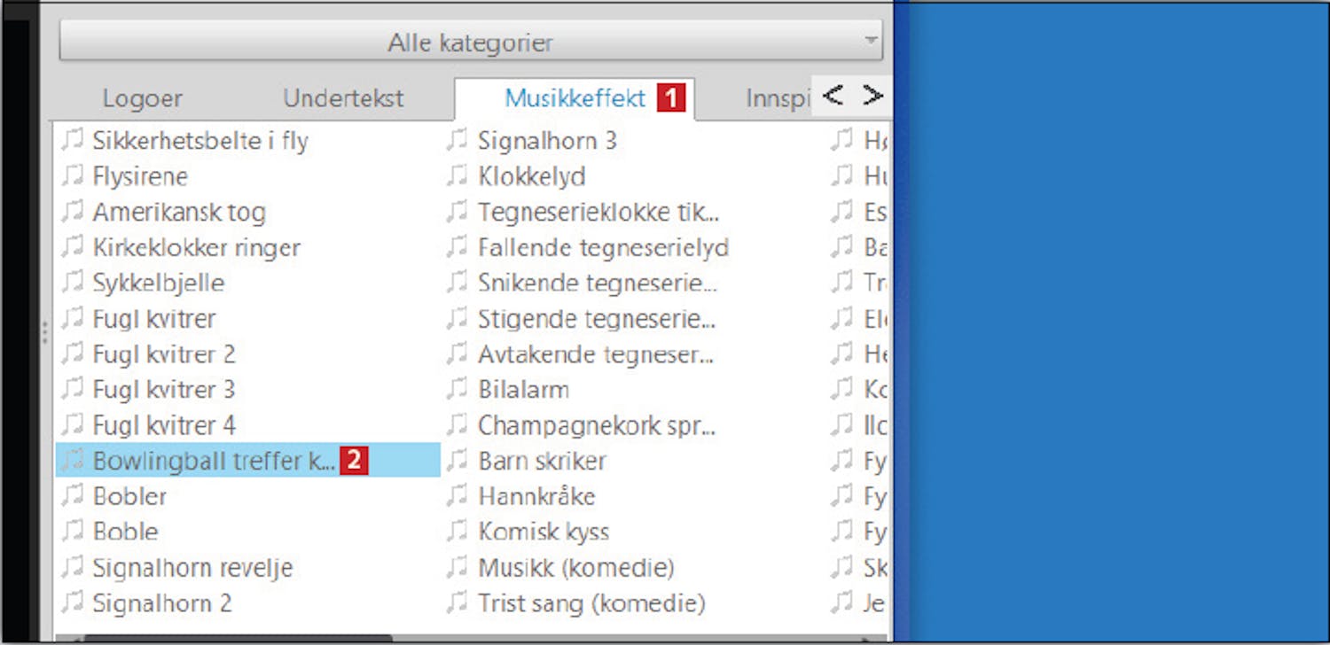 Gå ikke glipp av menyen Musikkeffekt. Du kan velge mellom rundt hundre effekter som gir morsomme lyder til lysbildeserien din.