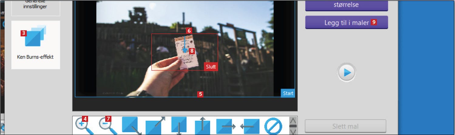 Som du kanskje allerede har lagt merke til, har programmet noen ekstra bildeeffekter som zooming og panorering over bildene. Det kalles Ken Burns-effekt og gir liv til lysbildeserien. Her viser vi hvordan du bruker effektene.