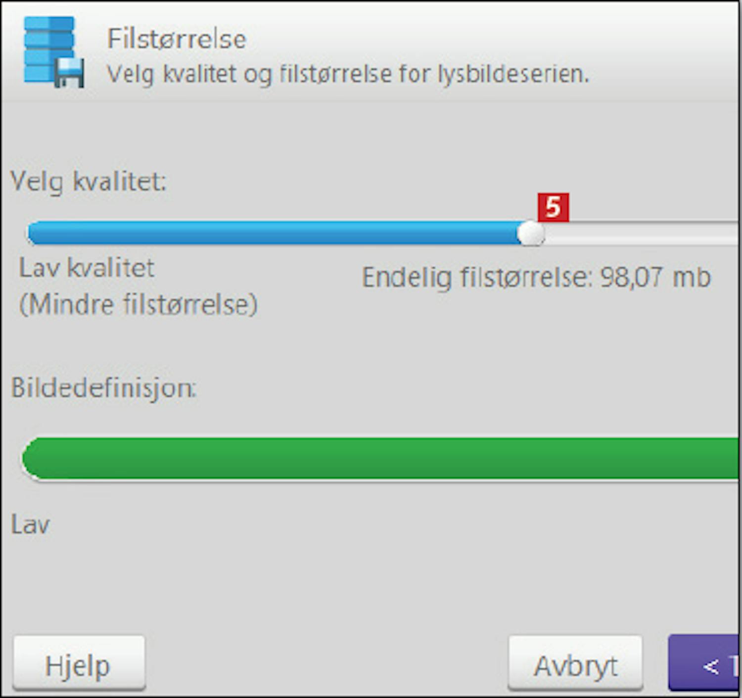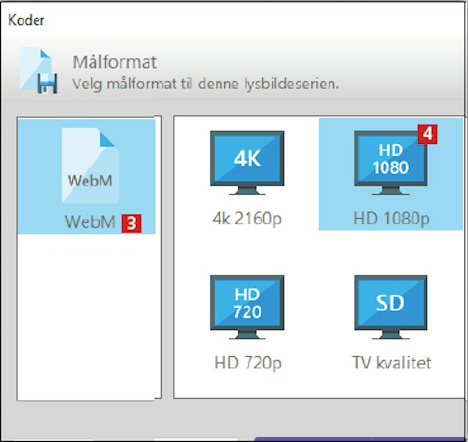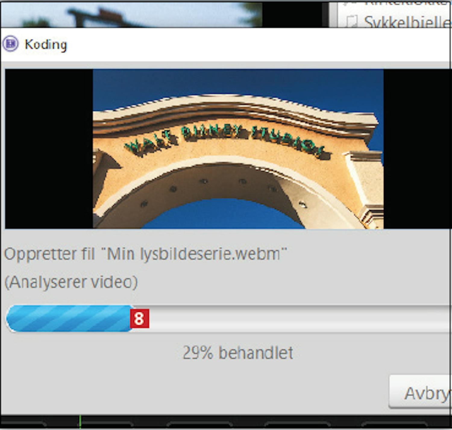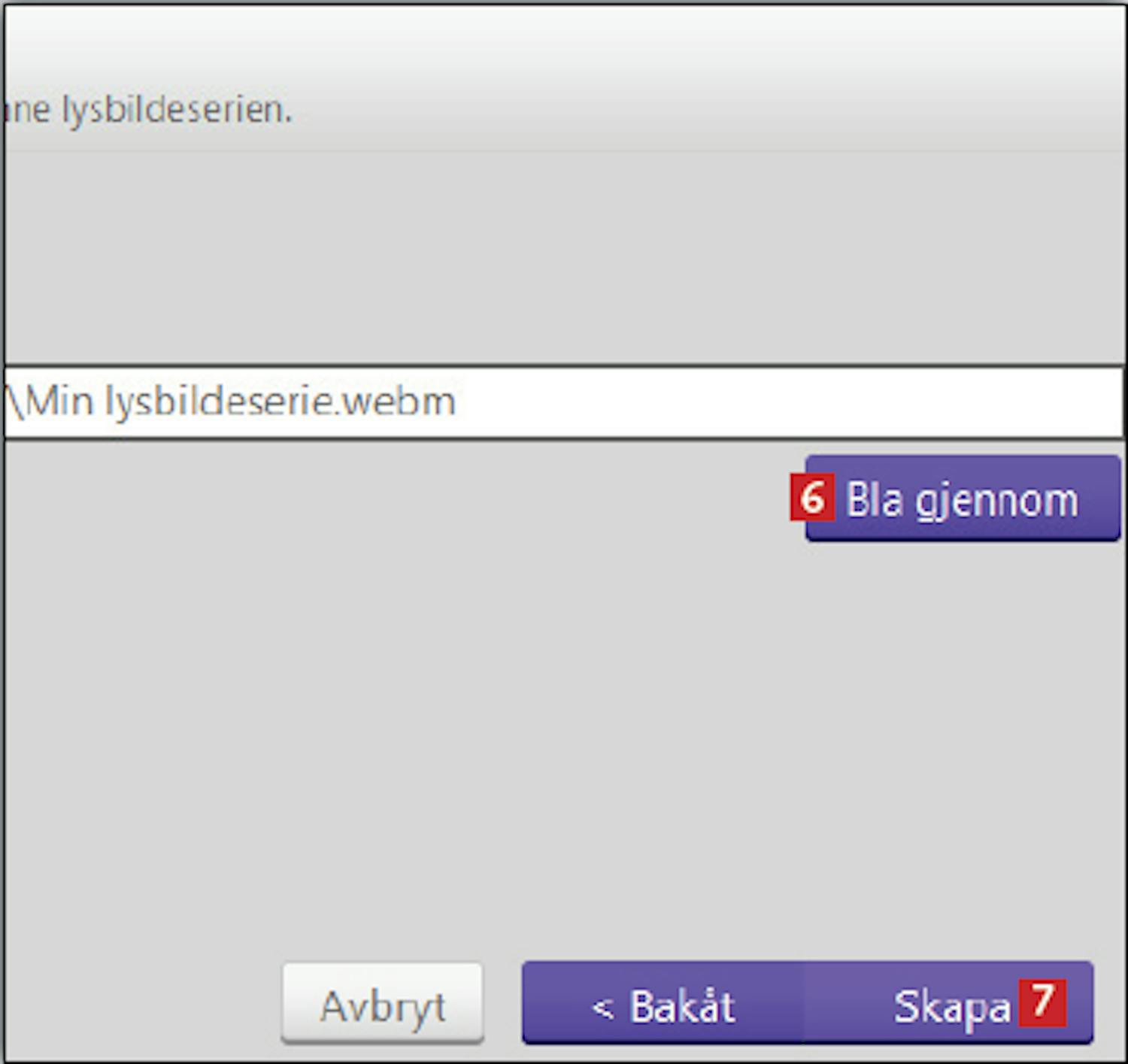 Du lagrer lysbildeserien som en videofil i formatet WebM. Formatet kan spilles av med alle avspillingsprogrammer som Windows Media Player eller lastes opp på nettet som en YouTube-video.