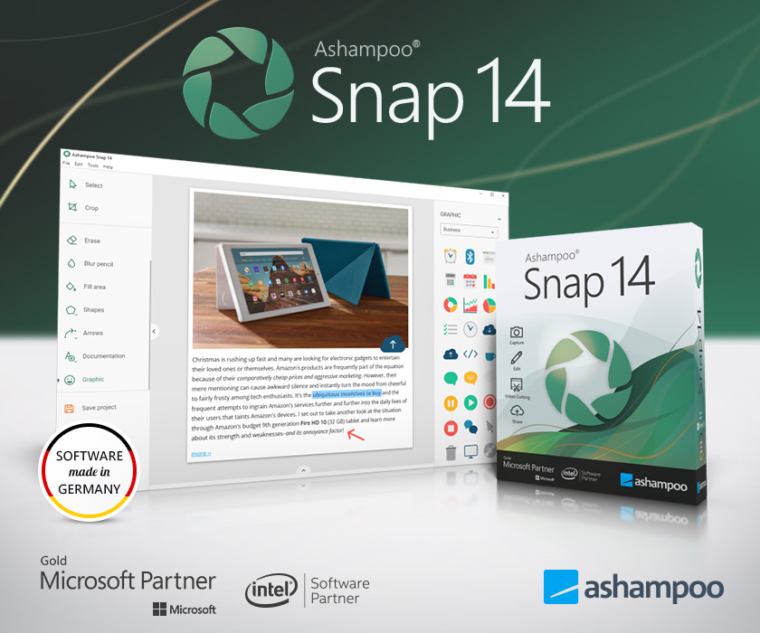 Med Ashampoo Snap 14 kan du ta opp alt du ser på skjermen – enten som skjermbilder eller videoklipp. Det kan for eksempel være praktisk hvis du skal vise andre noe på skjermen din eller hvis du trenger eksperthjelp til å løse et problem.
