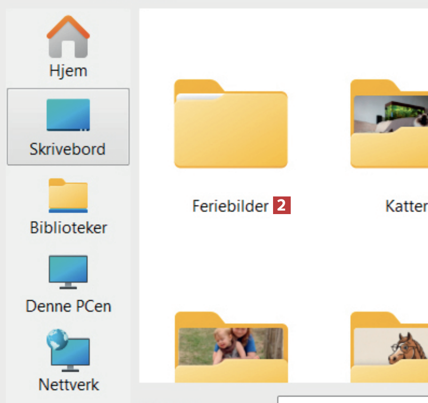 Til høyre i programmet skal du finne frem til mappen som inneholder bildene du vil ha med i visningen. Dobbeltklikk på mappen 2.