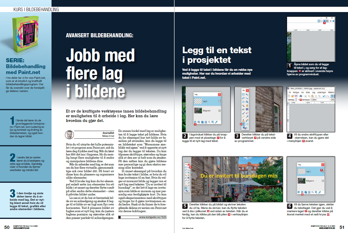 I denne artikkelserien viser vi deg de mest grunnleggende funksjonene i Paint.net slik at du kan komme i gang med å bruke programmet. Når du mestrer disse teknikkene og er klar til å bli utfordret i mer avanserte funksjoner, finnes det mange gode og utførlige veiledninger på Google og YouTube som viser deg hvordan du bruker programmet.