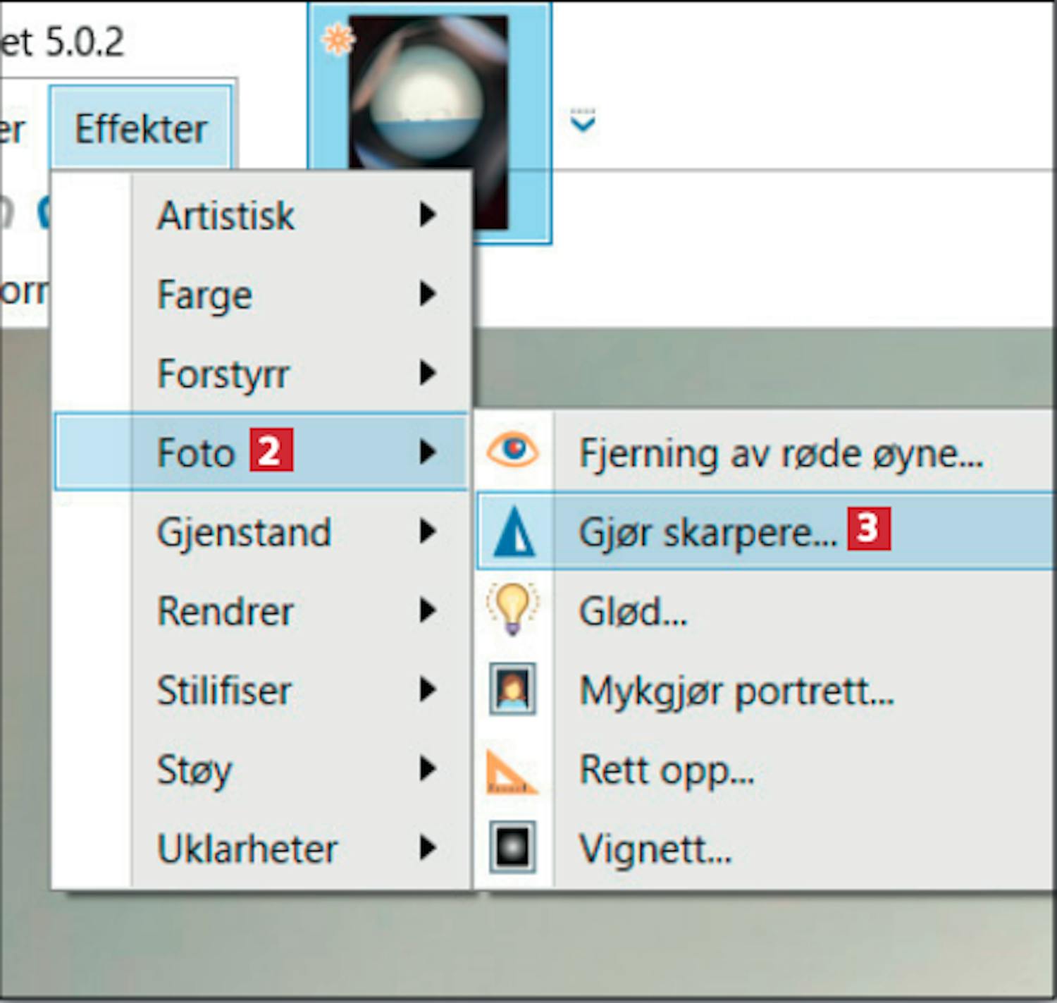 Hvis du har tatt et bilde som kanskje ikke ble helt skarpt, kan det i noen tilfeller hjelpe å øke skarpheten et hakk.