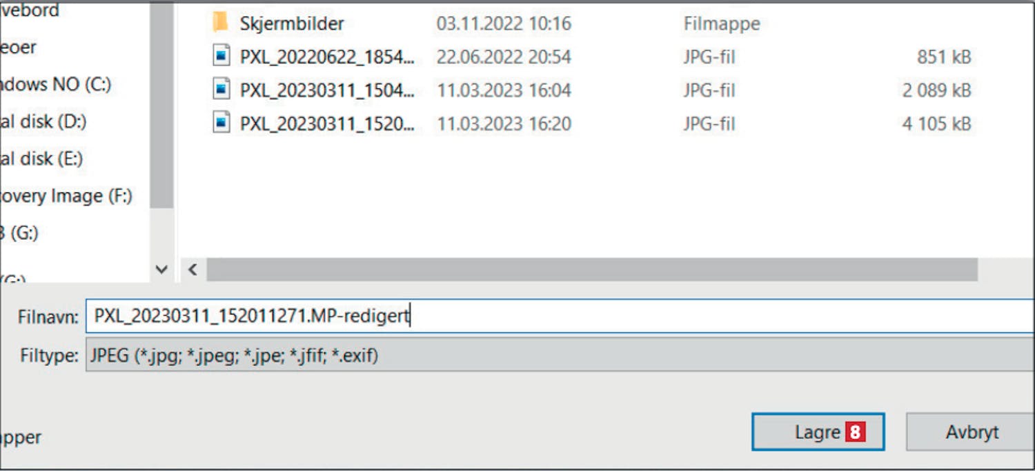Når du er ferdig med å justere bildet, er du klar til å lagre det på datamaskinen. Før du lagrer det kan du vurdere å skalere det litt ned i størrelse hvis det er veldig stort.