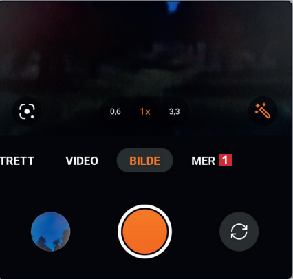Åpne kamera-appen på mobilen, og trykk på knappen Mer 1. På andre modeller kan knappen bestå av tre prikker eller ha et navn som Flere innstillinger eller lignende.