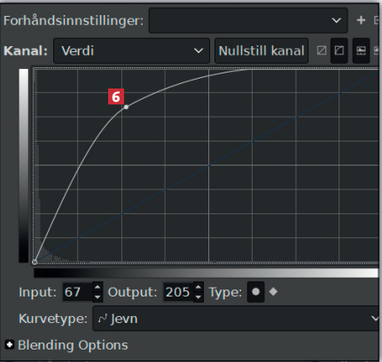 Klikk på streken i vinduet, hold museknappen nede og dra streken opp, slik at kurven ser ut omtrent som her 6 . Klikk på OK.
