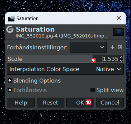 Klikk på skyveknappen der det står Scale, hold museknappen nede og dra skyveknappen til høyre til cirka dette punktet 9. Klikk på OK 10.