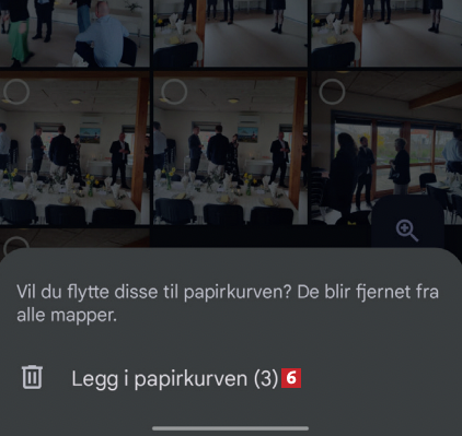 Trykk til slutt på Legg i papirkurven 6 . Bildene dine slettes fra Google Foto.