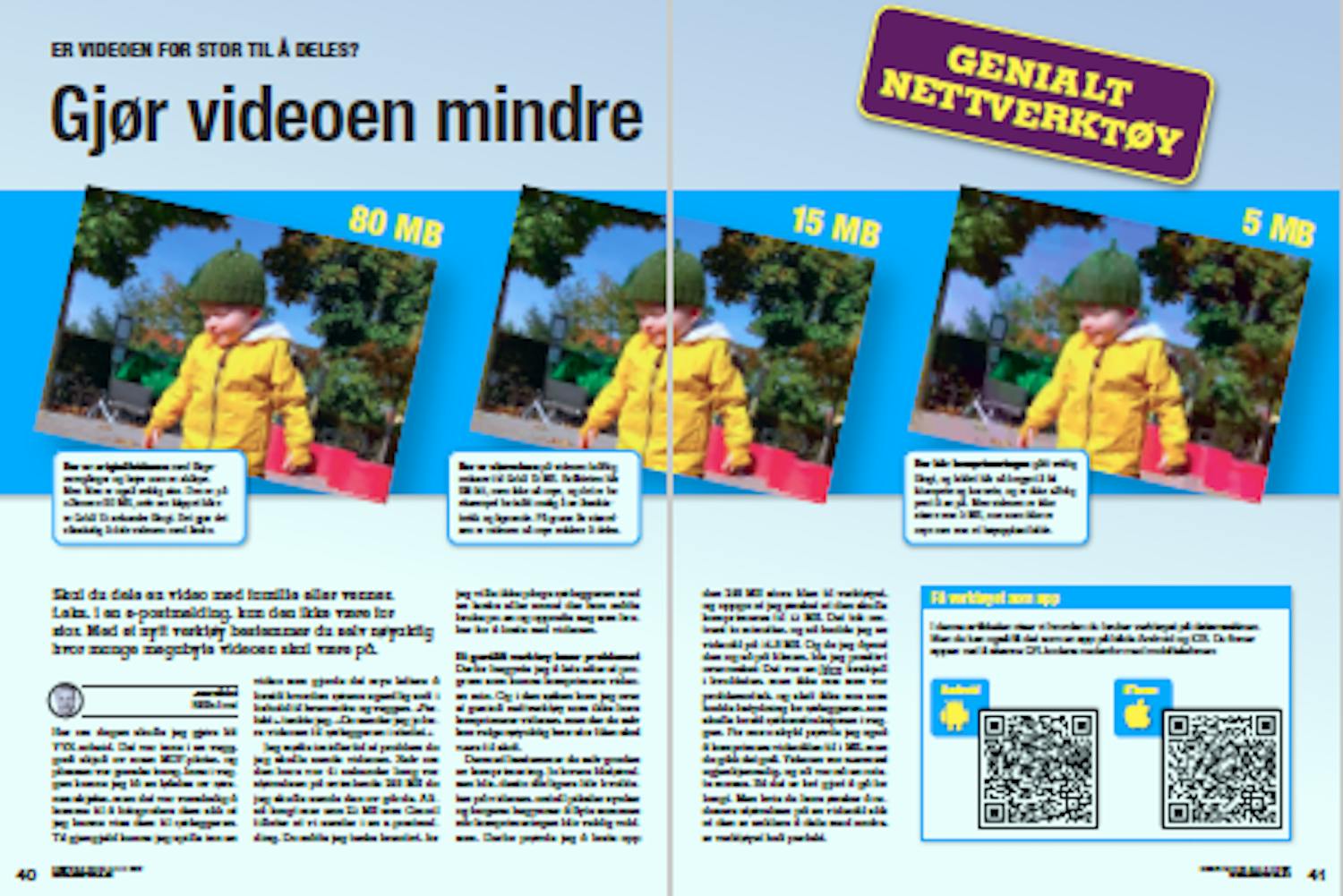 Til gjengjeld kunne jeg spille inn en video som gjorde det mye lettere å forstå hvordan rørene egentlig satt i forhold til hverandre og veggen. «Perfekt », tenkte jeg. «Da sender jeg jo bare videoen til rørleggeren i stedet.» Jeg møtte imidlertid et problem da jeg skulle sende videoen. Selv om den bare var 41 sekunder lang var størrelsen på svimlende 249 MB da jeg skulle sende den av gårde. Altså langt mer enn 25 MB som Gmail tillater at vi sender i en e-postmelding.