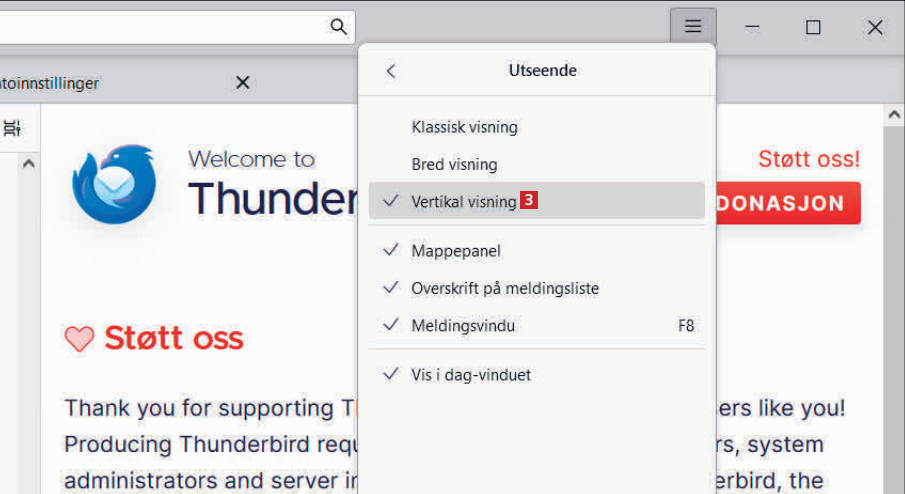 Jeg bruker det utmerkede e-postprogrammet Thunderbird, men irriterer meg over at en åpnet e-post vises nederst i vinduet (altså under innboksen). Det ville vært bedre hvis innholdet i meldingen ble vist ved siden av innboksen.
