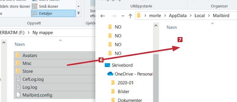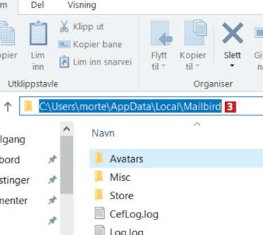 Skriv C:\users\brukernavn\AppData\Local\Mailbird 3, der du erstatter ”brukernavn” med ditt eget brukernavn. Trykk på Enter, så ser du innholdet av en mappe.
