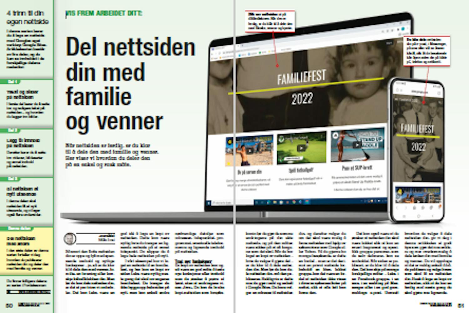 I den første delen viser vi deg hvordan du lager en nettside med tekst og bilder. Senere kan du lese om hvordan du legger til forskjellig innhold, og hvordan du forandrer på utseendet til nettsiden. Helt til slutt viser vi deg hvordan du deler den.