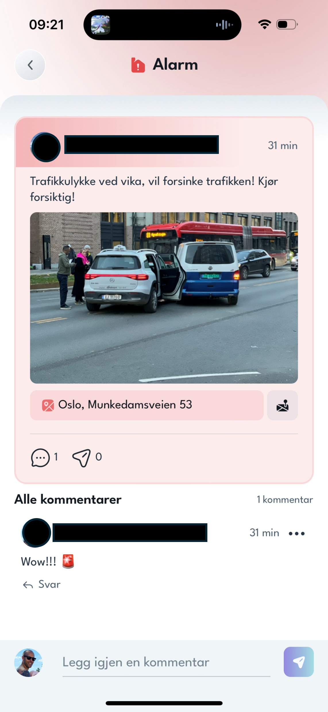 I skrivende stund øker antall brukere raskt, og i dag tidlig varslet en av disse om en kollisjon i Vika i Oslo, før politiet selv rakk å skrive om dette i sin app. Brukeren benyttet alarmfunksjonen i Hudd, som varsler andre brukere om kritiske hendelser.