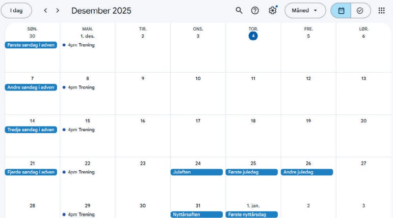 Jeg bruker Google Kalender flittig til å planlegge jobb og fritid, men synes ukevisningen er for begrenset. Derfor har jeg sett etter en innstilling der man for eksempel får vist to uker samtidig, men uten hell. Er det mulig å få vist mer enn bare én uke?