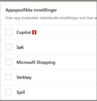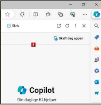 Klikk på knappen 4 ved Vis Copilot, slik at den blir hvit. Hvis knappen Start på nytt vises, klikker du også på den for å starte Edge på nytt.