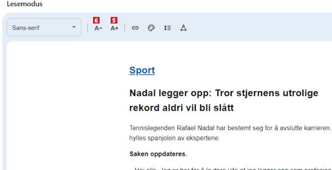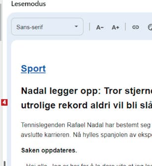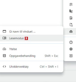 Dermed åpnes Lesemodus på høyre side i Chrome. Du kan dra i kanten 4 av lesevinduet for å gjøre det bredere.