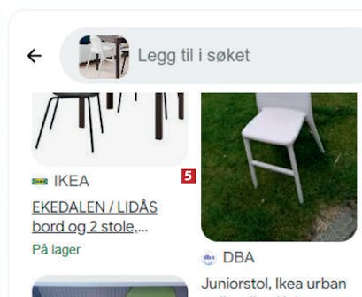Jeg ser ofte møbelannonser uten informasjon om hva møblene heter, og dermed finner jeg dem heller ikke på andre nettsider. Jeg har hørt at man kan søke ved hjelp av bilder i Google, men hvordan gjør jeg det?