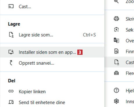 Åpne Chrome og gå til den siden du vil gjøre om til en app. Klikk på de tre prikkene øverst til høyre 1.