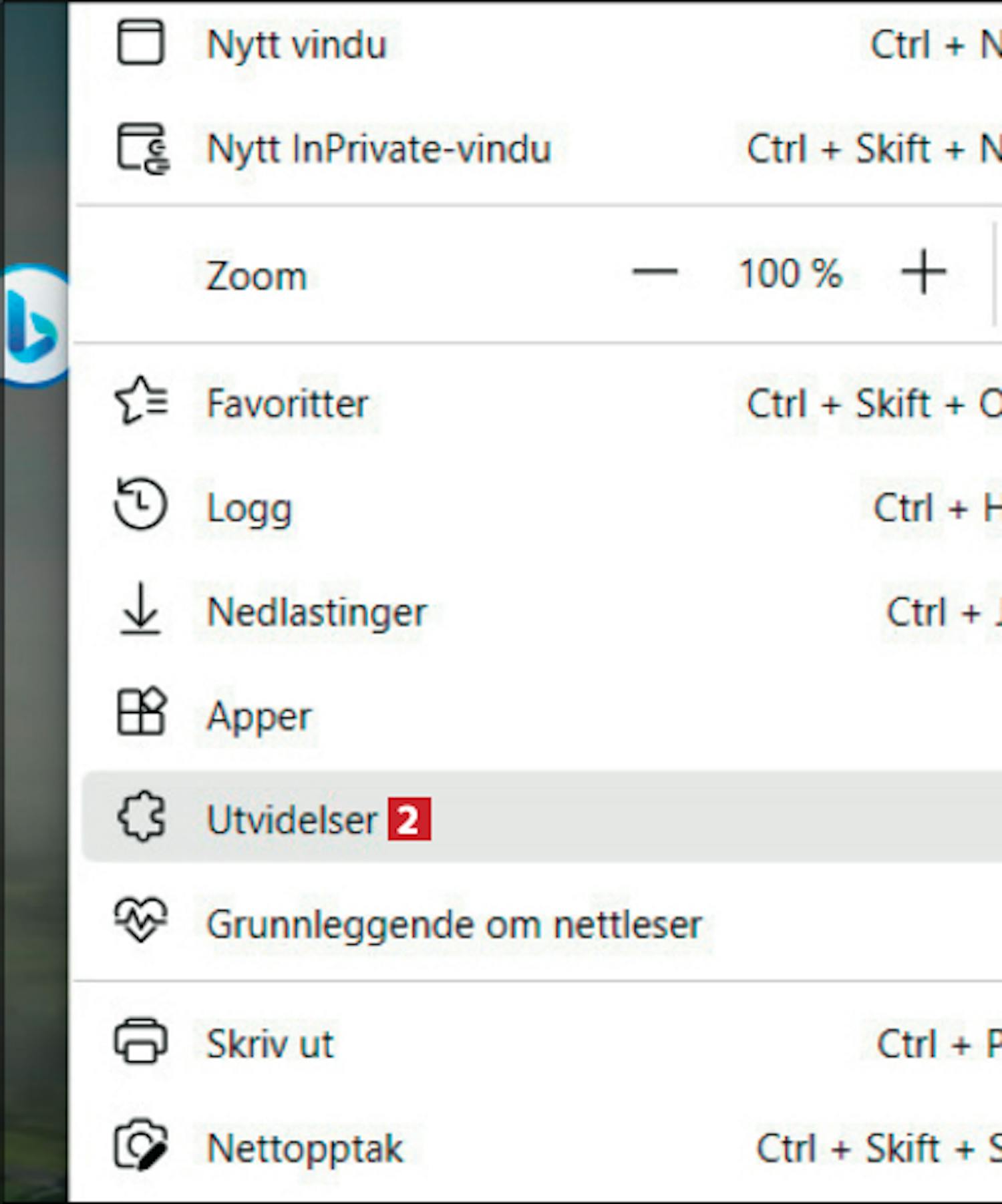 Deretter velger du menypunktet Utvidelser 2 .