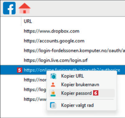 Hvis du bare er ute etter ett eller et par lagrede passord, kan du finne frem til dem i programmet og kopiere dem til utklippstavlen. Deretter kan passordet settes inn der du har bruk for det.