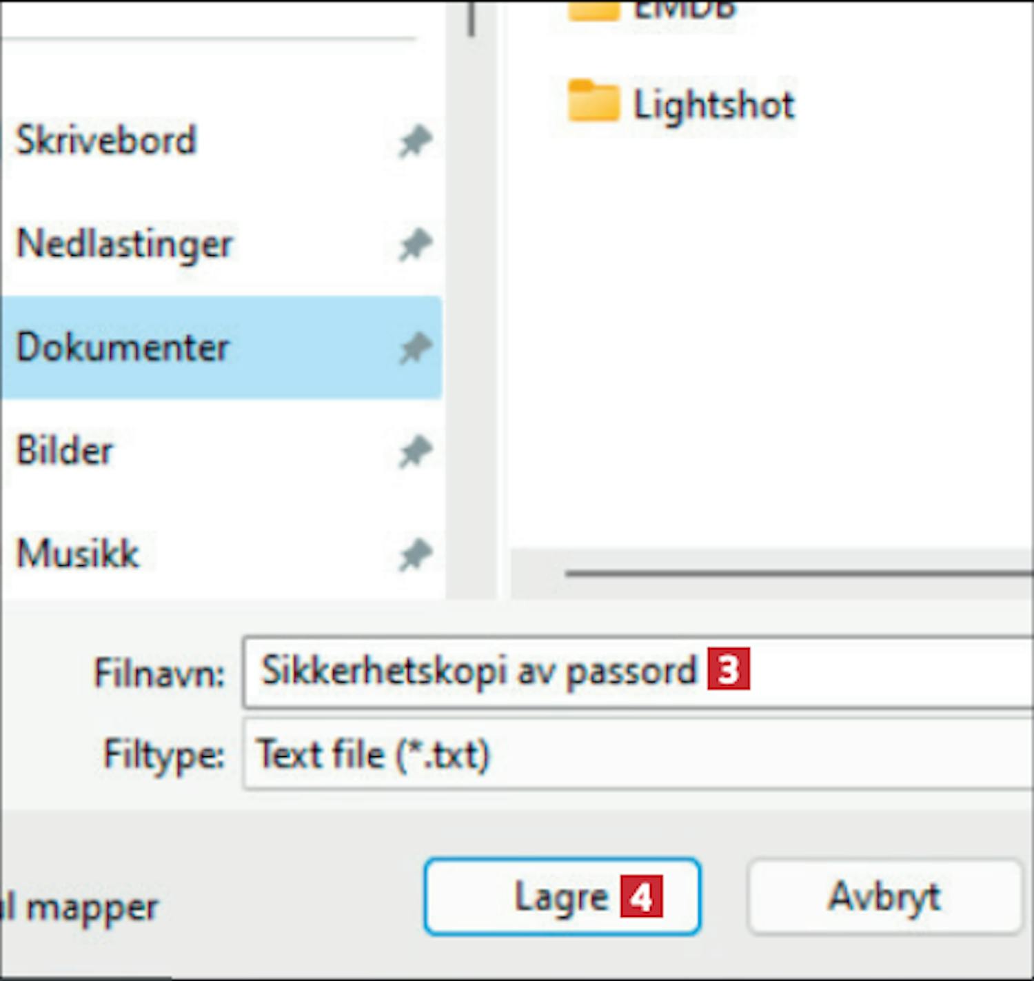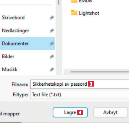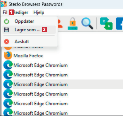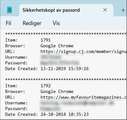 I stedet for å kopiere ett passord om gangen, kan du i SterJo velge å lagre en sikkerhetskopi av samtlige brukernavn og passord. Passordene lagres i en ganske vanlig tekstfil.