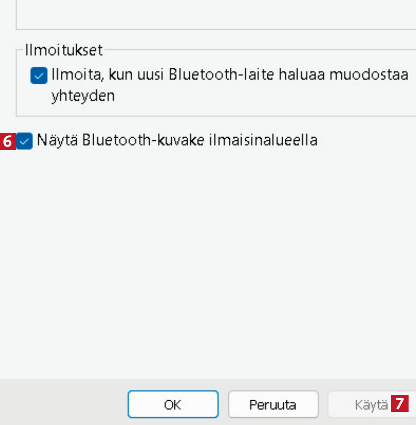 Sørg for å sette hake ved Vis Bluetooth-ikon i systemstatusfeltet 6. Til slutt klikker du på Bruk 7.