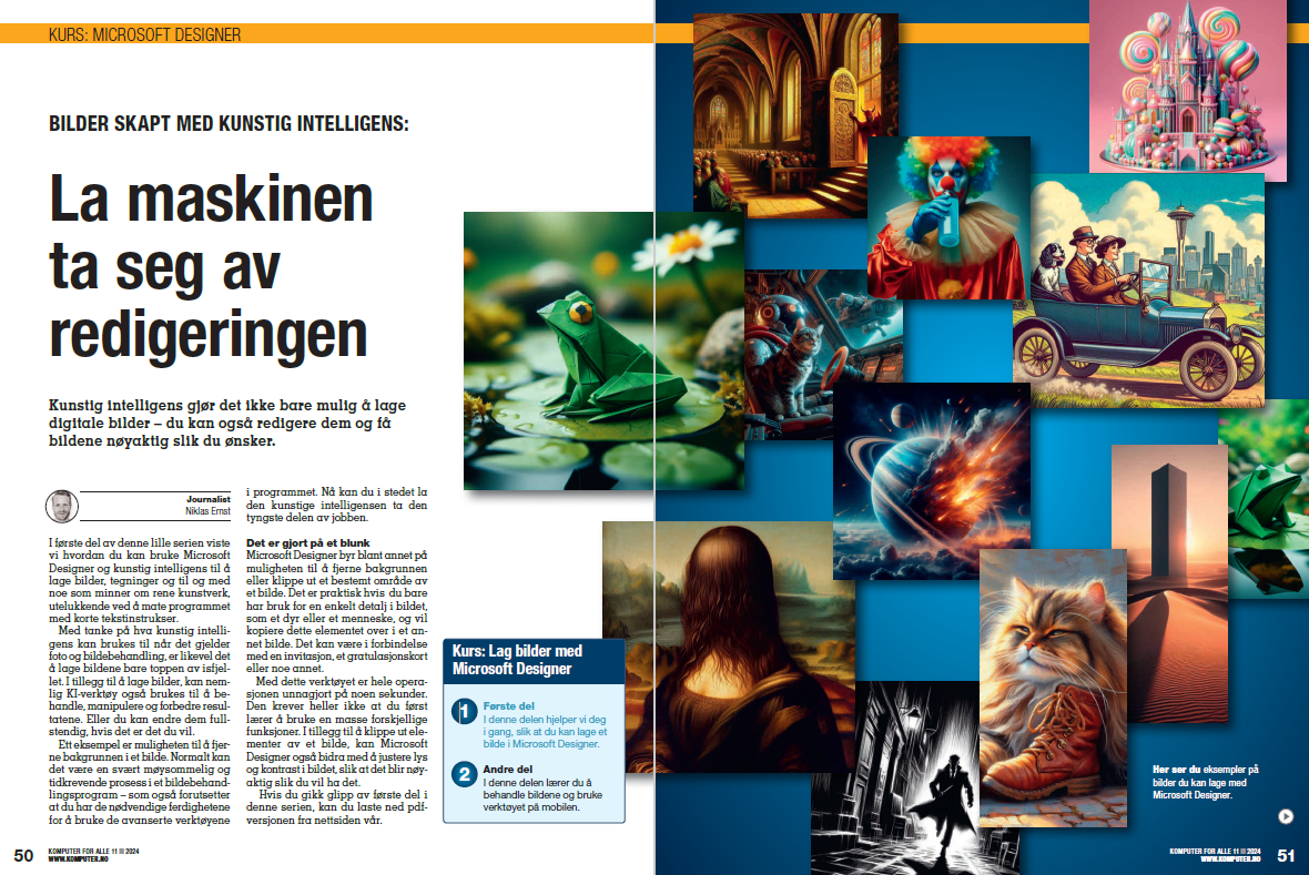 Det fungerer til og med på norsk, så alt du behøver å gjøre er å beskrive det du vil ha bilde av. DALL-E 3 er riktignok ikke gratis å bruke, men koster 279 kroner per måned. Det er ingen høy pris i seg selv, men kan likevel være litt mye hvis man ikke helt vet hva man skal bruke verktøyet til. Heldigvis finnes det snarveier som gjør at du kan bruke DALL-E 3 uten å legge ut en eneste krone. Og som abonnent på bladet du leser akkurat nå, deler vi gjerne denne snarveien med deg, slik at du kan begynne å teste ut DALL-E 3 uten at det koster deg noe som helst.