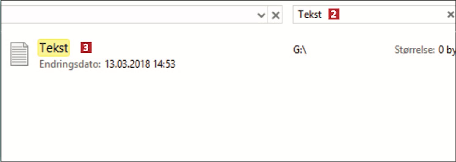 ordet Tekst – og søkeresultatet dukker straks opp 3.