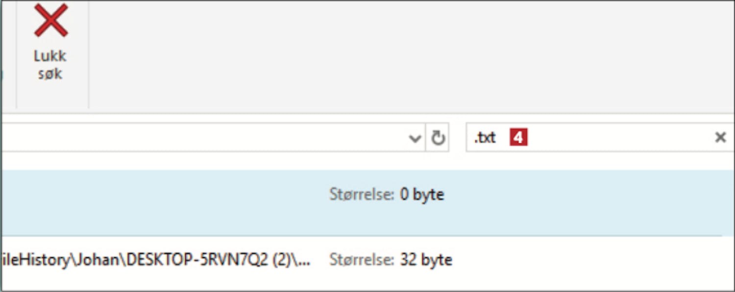 Søk i øverste høyre hjørne 2. Vi vet at filnavnet starter med