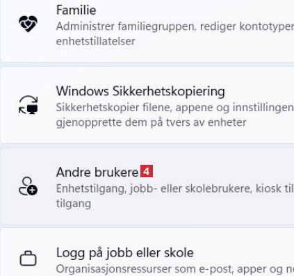Hvis du tidligere har opprettet en Windows-konto for en kompis eller noen i familien, tar den en del plass. Har du ikke bruk for den, kan den godt slettes.