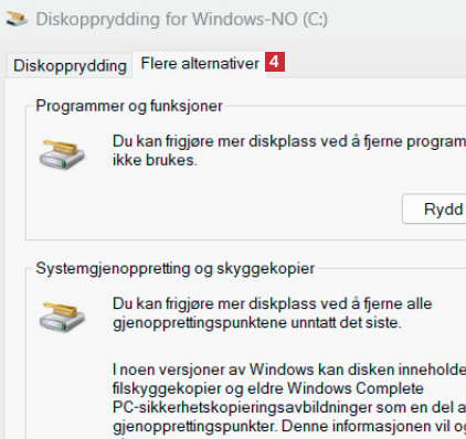 Tips 3: Slett de eldste gjenopprettings-punktene