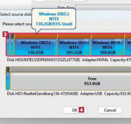 Når du har satt den nye NVMe-disken i dokken og ser disken i Windows, er du klar til å klone hele den gamle disken til den nye, slik at du senere kan la de to bytte plass.
