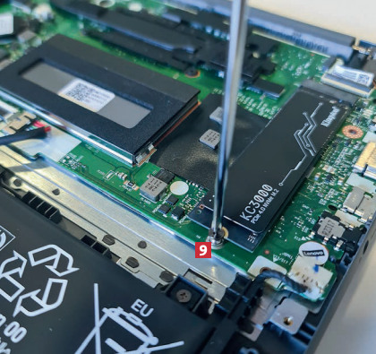 Finn til NVMe-disken på hovedkortet 3. Nå fjerner du den lille skruen som holder kortet på plass 4.