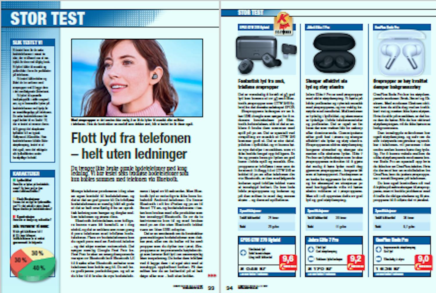 Du finner Bluetooth i alt fra iPaden og pc-en til Smart TV-en, og hodetelefonene i testen kan brukes med alle produkter som har innebygd Bluetooth. En av de to testvinnerne kan til og med brukes med pc-en din uten Bluetooth takket være en liten USB-adapter. Det er en smakssak om du foretrekker gammeldagse hodetelefoner som dekker øret, eller om du heller vil ha små propper som du dytter inn i øret. Øreproppene er imponerende høyteknologi som leverer flott lyd i en usannsynlig liten innpakning.