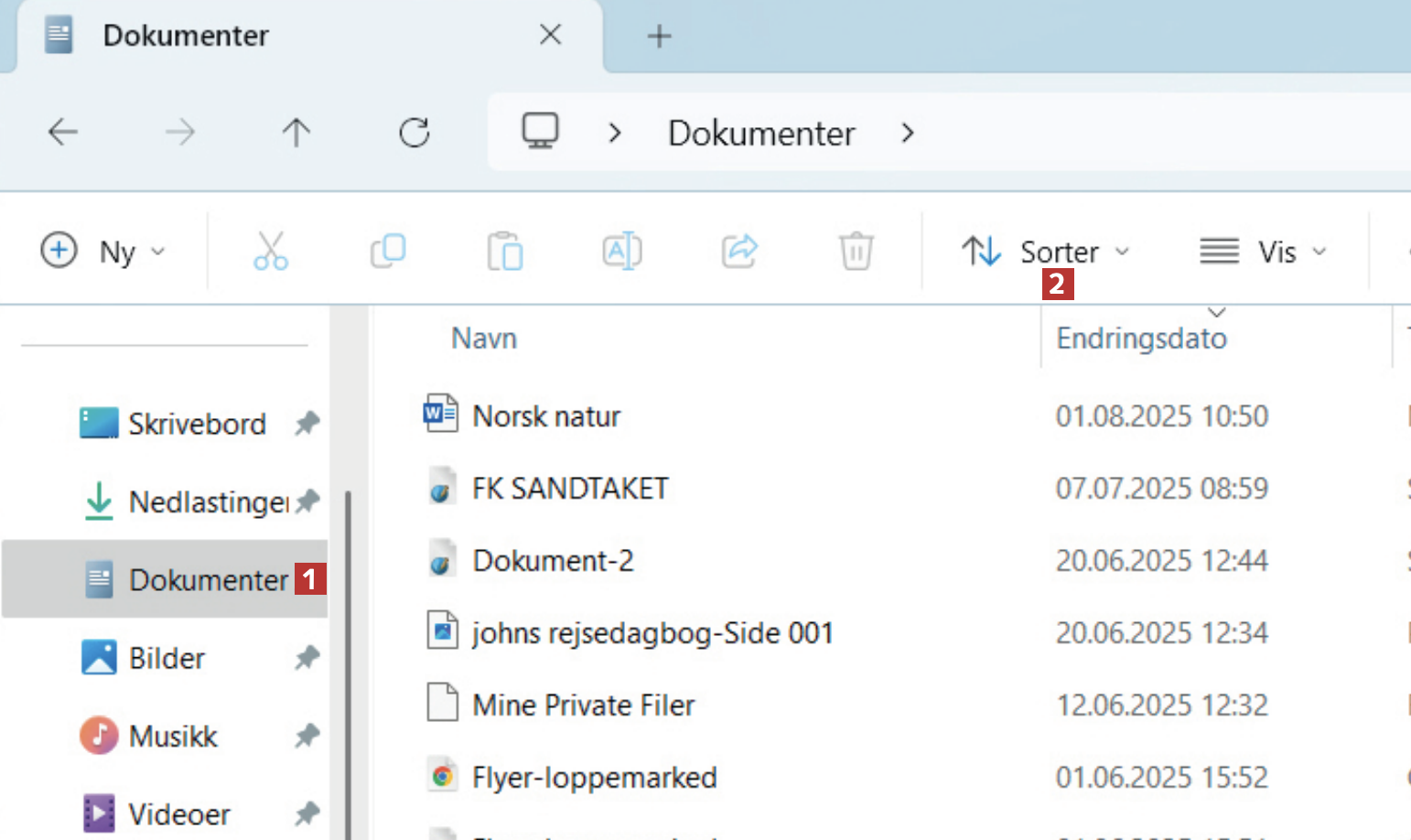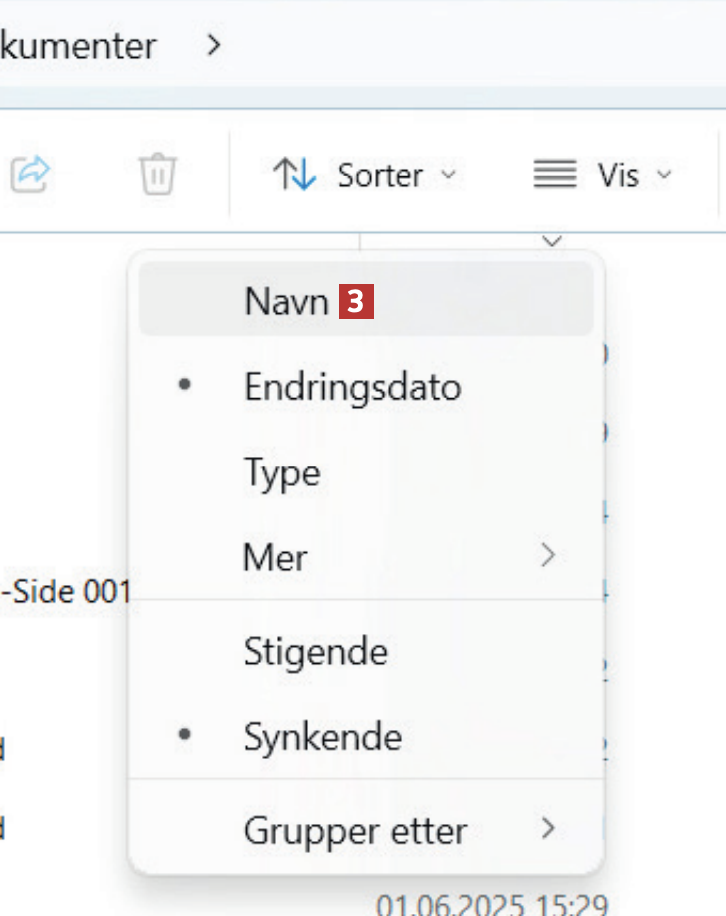 Nylig kopierte jeg filer fra et større antall mapper på Windows 10-maskinen til en ekstern harddisk, og videre til maskinen med Windows 11. Men nå er ikke lenger filene i mappene sortert etter navn, og dermed er det vanskelig å finne frem i Filutforsker. Hvordan endrer jeg sorteringen?