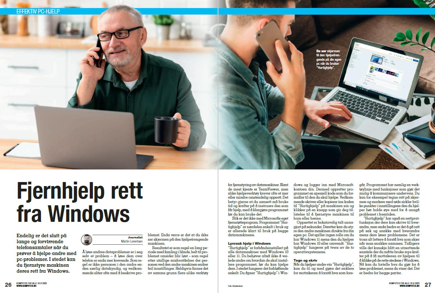 Vedkommende skriver eller kopierer inn koden til ”Hurtighjelp” på maskinen sin og klikker på en knapp som gir deg tillatelse til å fjernstyre maskinen til ham eller henne. Oppsettet er bokstavelig talt unnagjort på sekunder. Deretter kan du styre den andre maskinen direkte fra din egen pc. Det spiller ingen rolle om du har Windows 11 mens den du hjelper har Windows 10 eller omvendt. ”Hurtighjelp” fungerer på tvers av de to operativsystemene.