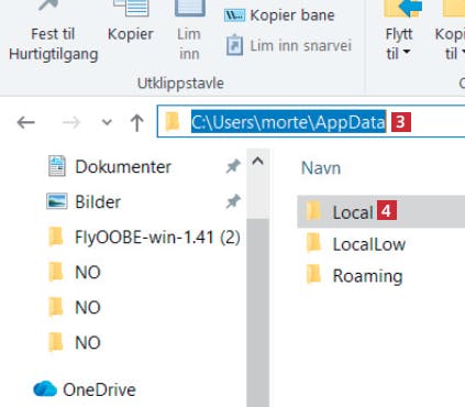 Deretter går du til systemmappen C:\Users\morte\AppData 3 (erstatt morte med ditt eget brukernavn), og klikker deretter på Local 4.