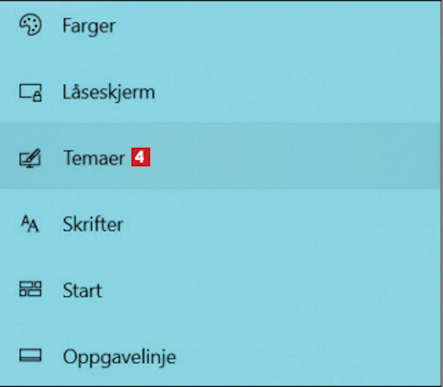 I panelet til venstre klikker du på menypunktet Temaer 4.