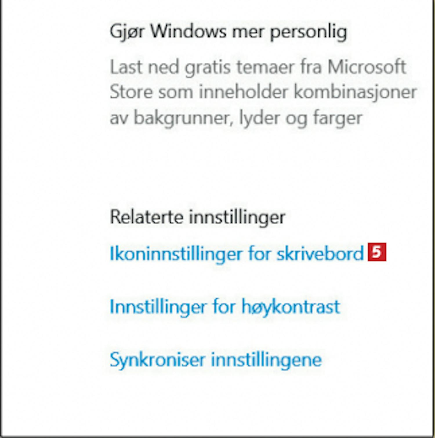 I det neste vinduet klikker du på Ikoninnstillinger for skrivebord 5 lengst til høyre.