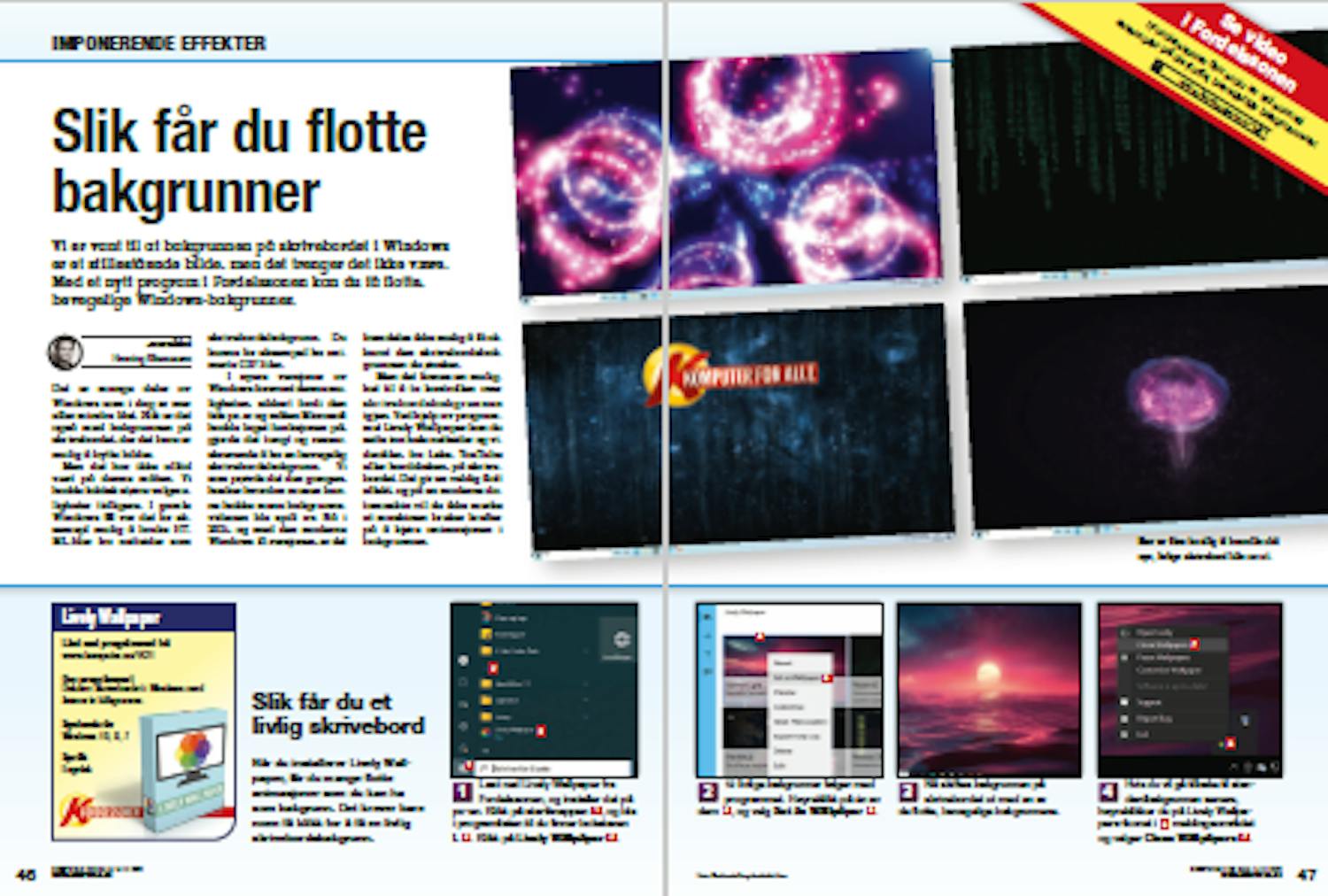 Med Lively Wallpaper kan du ha en helt vanlig nettside, for eksempel en nyhetsside, på skrivebordet. Du kan også sette inn en flott video fra f.eks. YouTube, eller en video du har laget selv. Her viser vi hvordan du bruker en videofil fra harddisken som skrivebordsbakgrunn.