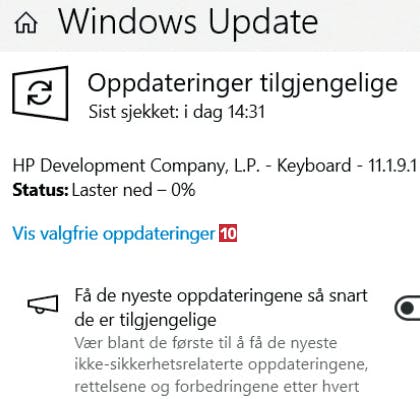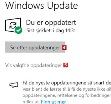 Først klikker du på Søk etter oppdateringer 4. Da oppdateres systemet med valgfrie oppdateringer, som du ser ved Vis valgfrie oppdateringer 5.