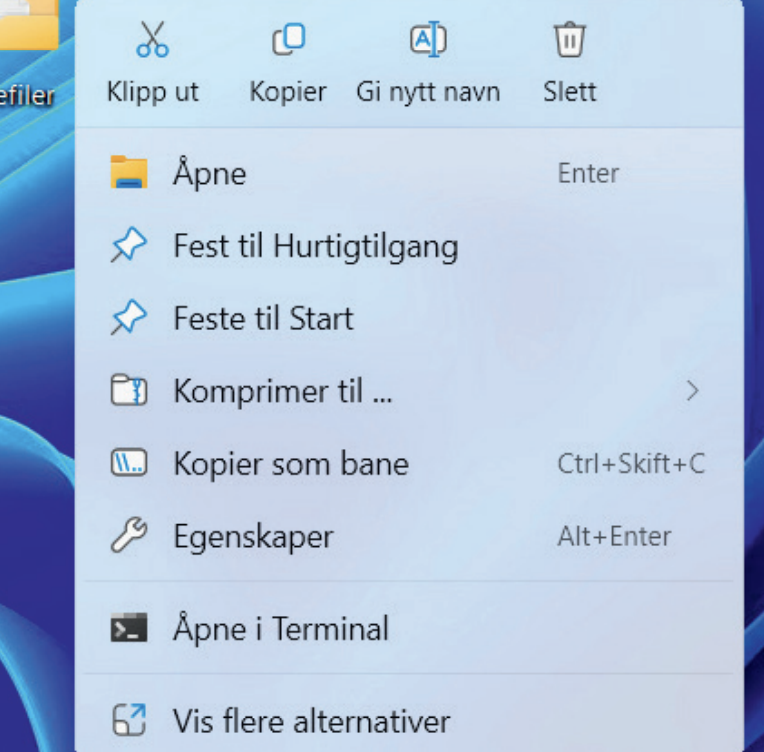”Mitt største problem med Windows 11 er utvilsomt den nye og amputerte høyreklikkmenyen. Sammenlignet med tidligere Windows-versjoner byr den på langt færre valg, den er lite intuitiv og forutsetter at jeg klikker meg gjennom flere underkategorier for å finne funksjonen jeg er ute etter.”