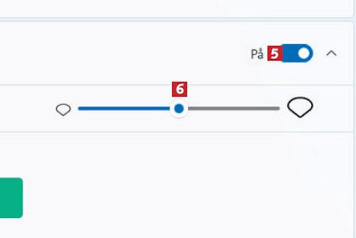 Pass på at skyveknappen er På 5, og tilpass størrelsen 6 på markøren. Lenger nede i vinduet kan du også endre farge på markøren.